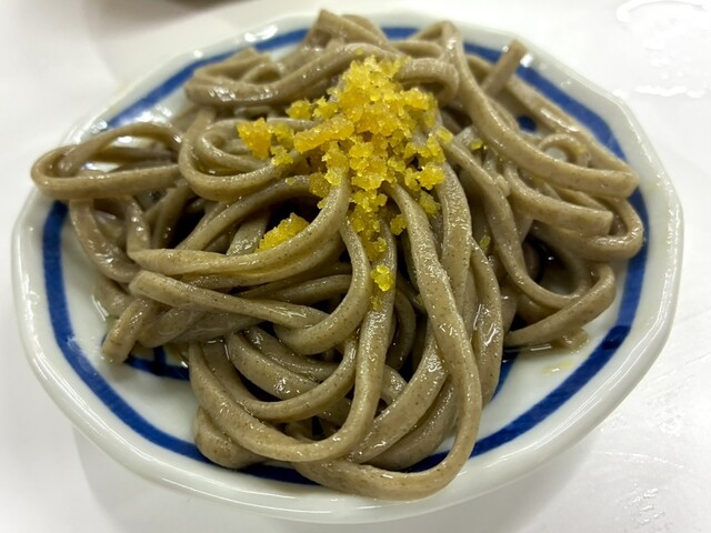 ガッツリ油とタレで味付けされた田舎蕎麦。