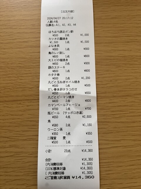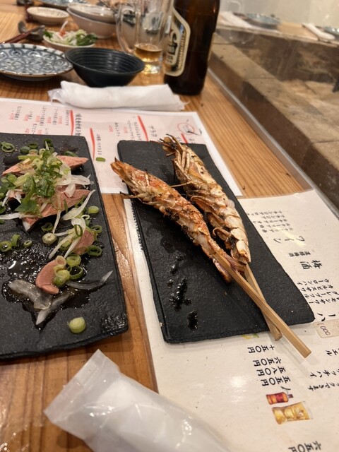 豚足が苦手な連れもこれは食べれるって言った豚足、カツオのたたき、新玉ねぎ、ピーマン、お隣グループにススメられたアヒージョなどなどお腹いっぱいになりました。サッポロ赤星があるのも最高でした。