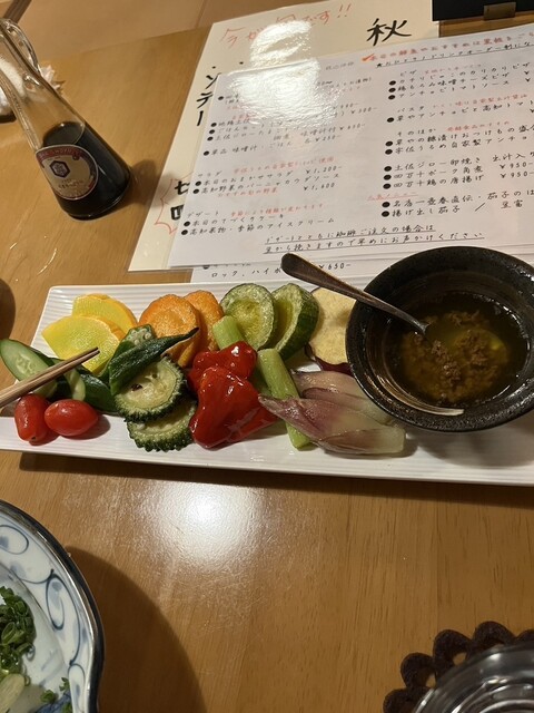 カツオのたたきは格別、初のナスのはさみ揚げ、ハンバーグも全部美味しかった!