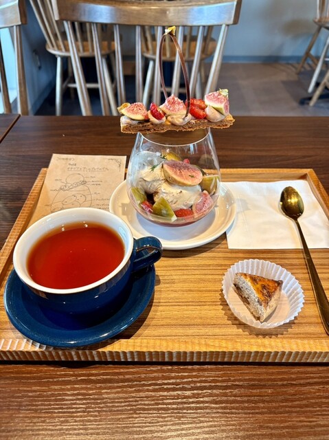 多岐産いちじくとアールグレイのパフェ アッサム紅茶 試食のスコーン