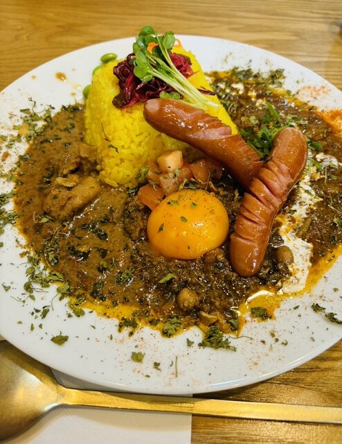デミグラスとチーズのWソースグラコロカレー。とろとろのグラタンコロッケ、デミグラスとチーズソースも美味しかったです。コーンや人参など端にあるトッピングと一緒にカレーを食べると違った味わいでより美味しく食べられました。