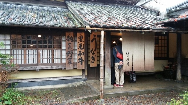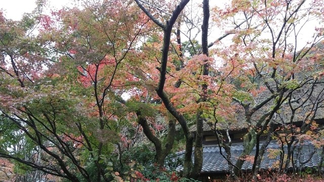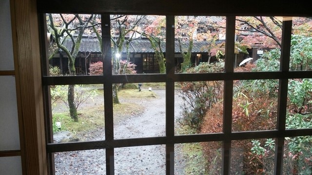 ■当日はあいにくの雨でしたが、小雨降りしきる紅葉の落ち葉を踏んで見えてきたのは亀の井別荘、と併設する、土産物屋の鍵屋さん、そしてお食事処の湯ノ岳庵さんです。