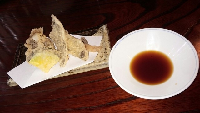 まず出てきたのは白和え、お豆腐が味噌とあってとっても美味しい、ほうれん草?かと思って食べたのは春菊でした。春菊独特の風味がなんとも言えない美味しさでした。