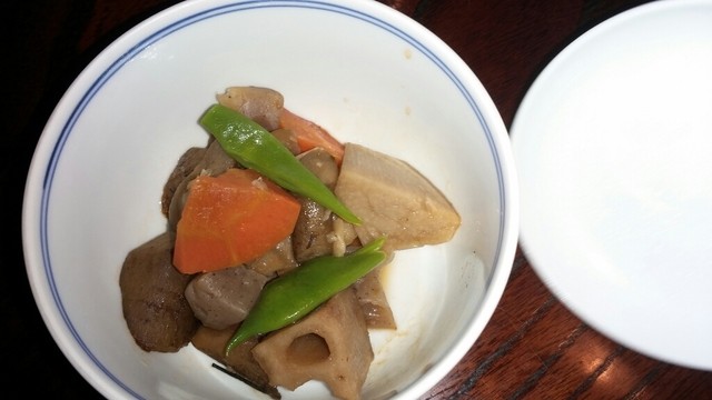 大きめに切ってある鶏やこんにゃく、根菜があっさり煮てあってとっても美味しい。まさに野飯って感じです。素朴な味が味わえます。