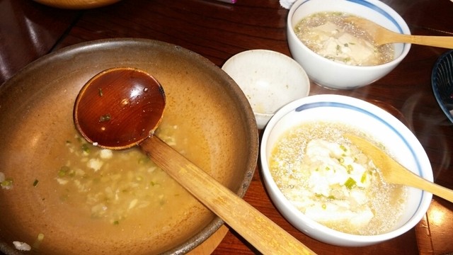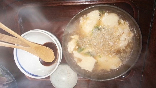 漢字が読めなくてこれでいいのか分かりませんが、あつあつのお鍋の中には食べたことないお豆腐が!ポン菓子みたいなお米をふりかけて、グツグツ、しばらくするとお米がふわーりととろけて、とっても美味しいお鍋になりました。お豆腐とろけます。お米との相性抜群、最後に来るごはんまで少し残しておきました。(一緒に食べると絶品なんです!)