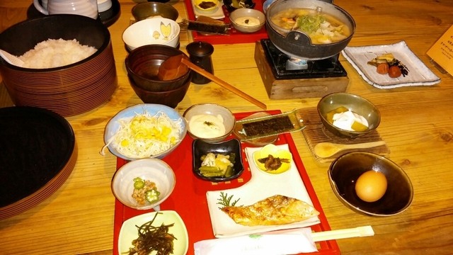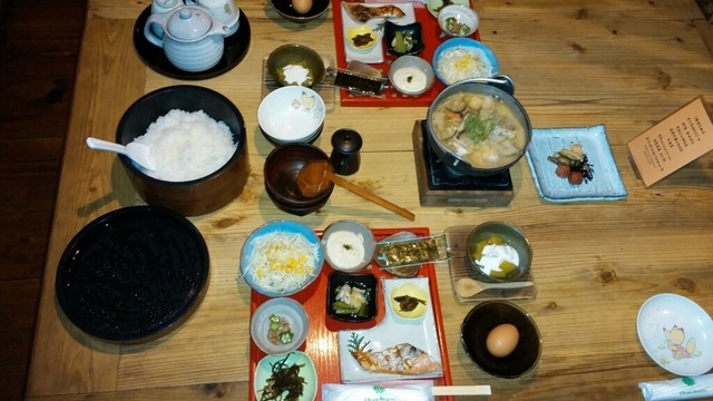 朝食、名物だんご汁まで出てきました。