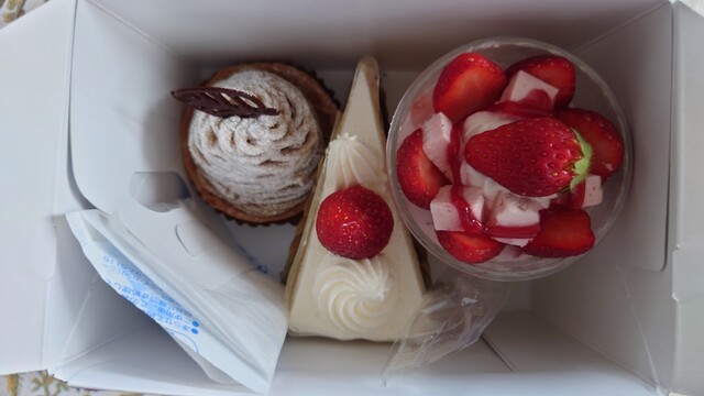 蒸し栗のモンブラン、苺のショート、ストロベリーパフェ