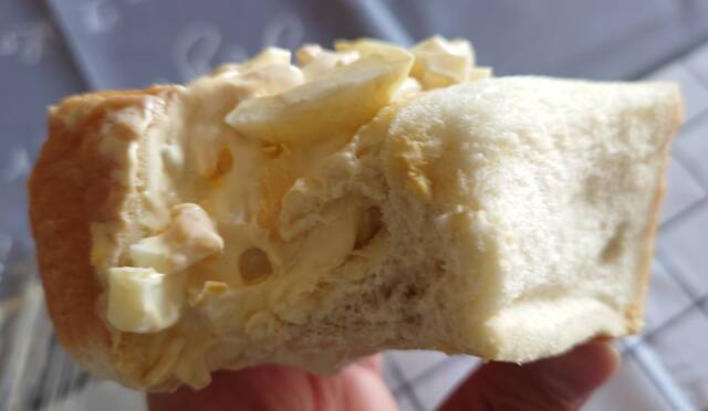 タマゴサンドはタマゴたっぷり、白身大きめ