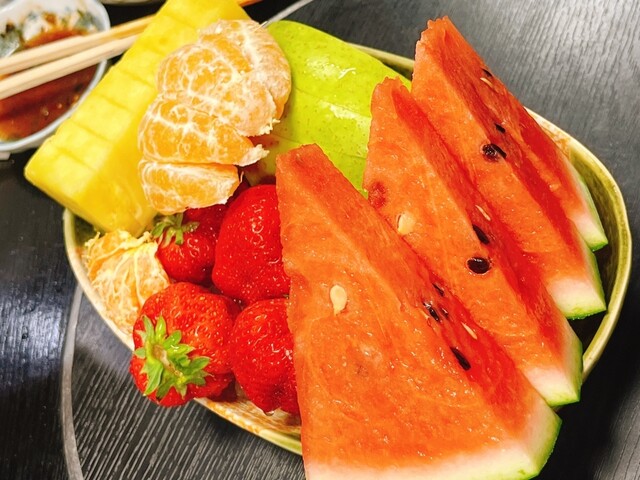 スイカやあまおうなどの数種類のフルーツが最後の〆に出てきます。