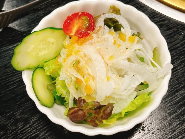サラダに掛けたドレッシングは、柑橘系のサッパリした酸味のある味わい。