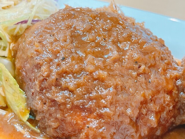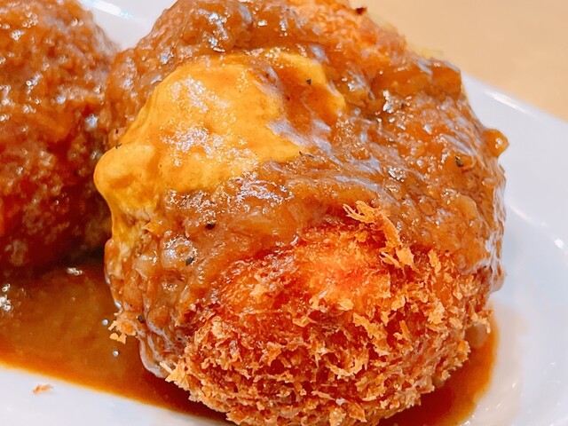 このデミグラスソースがたっぷり掛かっているので、コロッケの衣がしっとりしているのも逆にまた良いんです。
