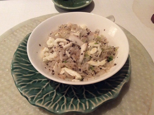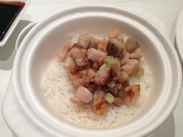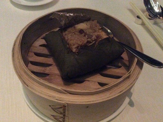 角切り鮑、ガチョウ、海老入り炒飯のハスの葉包み