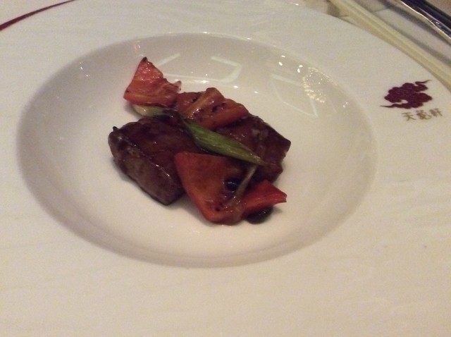 角切り和牛、百合根、季節の野菜の黒胡椒炒め