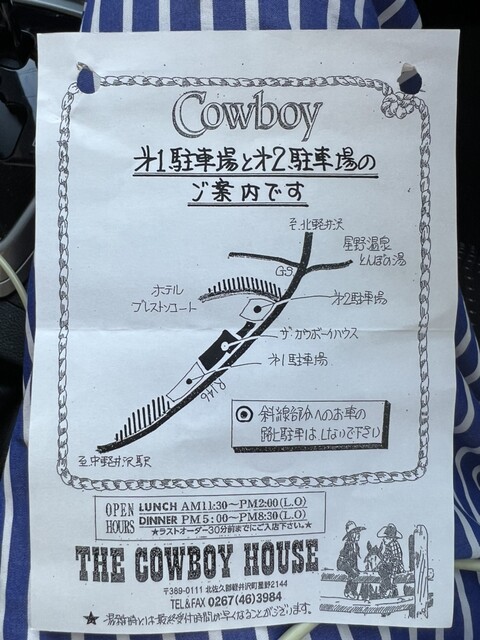 駐車場の車内で待って入店、お勧めされた数量限定のハンバーグ(約200g)とテキサスステーキ(フィレ)の200g、その他はカウボーイサラダ、ポルチーニスープ(×2)、ガーリックライス(大)、イタリアンプリン&カルメン(もちろん2人で食べました)