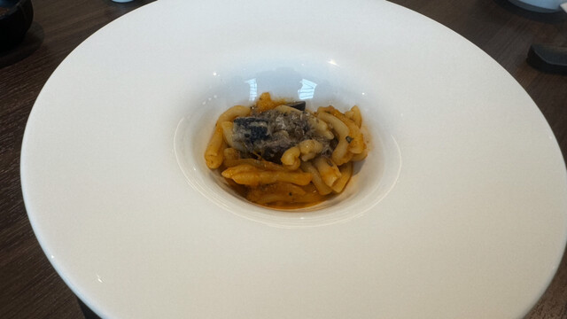 パスタ料理が1品、サーブされます。今回はオイルサーディンのパスタで少々好き嫌いが分かれたかもしれません(私は嫌いじゃないですが妻は少し苦手)