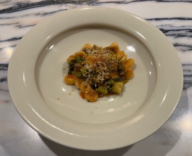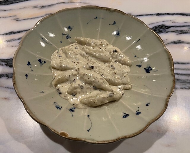 パスタは2品で、クリームとトマトソース。里芋をパスタに見立てたり、自家製のパスタを使ったりと、それぞれ独特な食感を楽しめました。