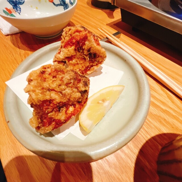 〆の雑炊はこの贅沢なスープを吸ったお米が、更に口を和ませてくれます。またニラ醤油の味変で二度楽しめます。唐揚げは厳選した国産若鶏のムネ肉をカラッと揚げていて外カリっ、中ジューシーでこちらも美味しかったです。