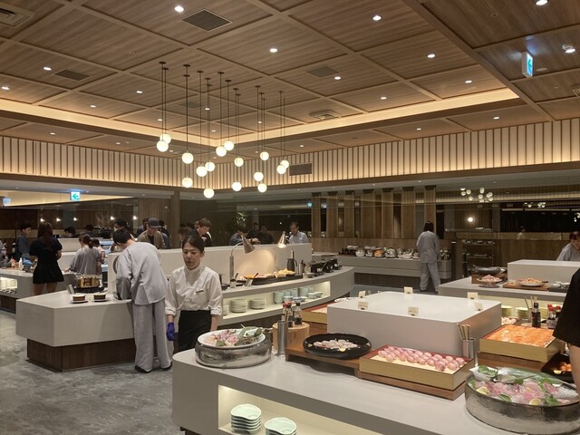 鹿児島有数の温泉地霧島のホテル、ザパルス霧島のビュッフェレストラン。2025年8月に改装オープンしたばかりでレストラン含め綺麗な内装です。