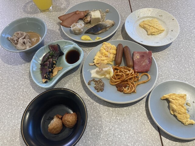夕食朝食ともにブッフェ。ホテルブッフェは施設によりピンキリですが、ここは過去最高の品揃えとクオリティでした。鹿児島産食材盛りだくさん、鶏豚牛の肉料理や魚刺身等、食べすぎ間違いなし。唯一の難点はめちゃくちゃ混み合うこと。