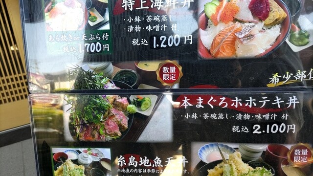 、 煮魚・刺身膳、 特上海鮮丼、北の国から、極み海鮮丼、ビフテキ、本生マグロホホテキ丼、