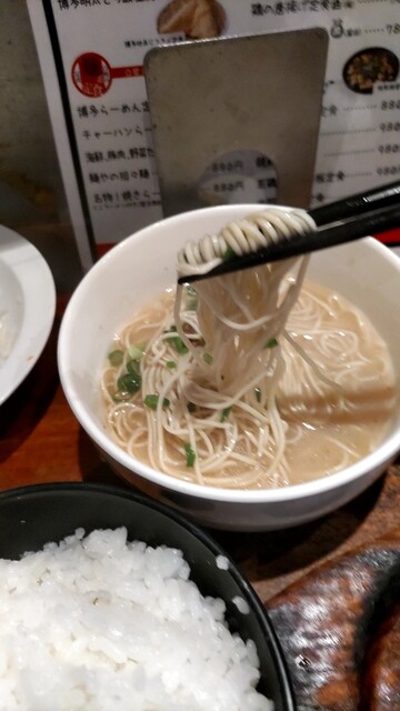 こちらのお店、全ての定食にミニラーメンがついて替玉し放題(/^-^(^ ^*)/