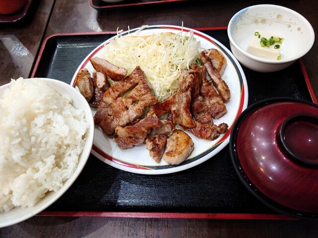 大乗りして餃子かつ定食のLとトンテキ定食のダブルを大飯で注文してシェアしながら頂きました