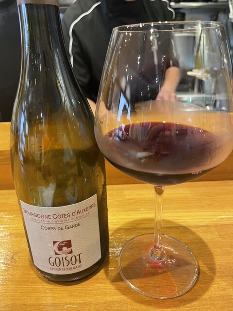 ワインは、シャンパーニュと赤ワインは持ち込みさせて頂き、白ワインはアリゴテをボトルで