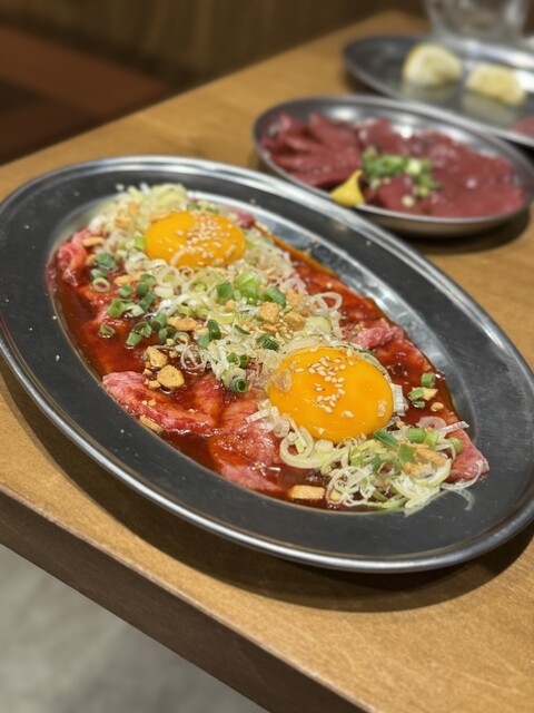 今回は5000円弱のコース+飲み放題1500円をいただきました〜。生タン3種盛りやユッケ、飲めるロースなどなど、これでもかというお肉のボリューム...特に卵黄で食べる薄切りのお肉が衝撃的に美味かったです✨