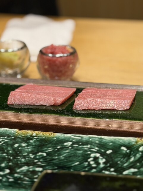 序盤に出てくる大間のマグロとノドグロ炙りは口に残る脂の余韻が最高でした。身がしっかり張った鰆、ねっとり甘いアオリイカ、こはだに漬けの赤身、澄んで弾力のあるひらめの昆布締め、キャビアが乗った贅沢なとろたくの軍艦、弾力抜群の車海老に二段のたっぷり雲丹で大満足。