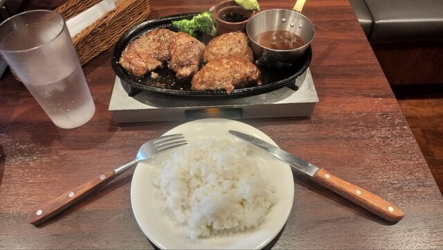 ハンバーグはきめ細やかな挽肉でふんわりと仕上がっており、ステーキも柔らかい肉質で非常に美味しい