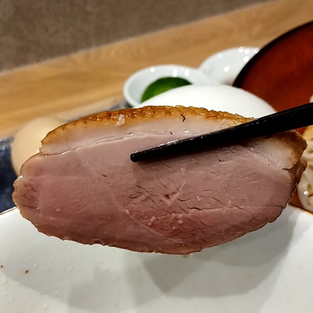 別皿:鶏むねチャーシュー・鴨チャーシュー・吊るし焼き豚バラ・味玉