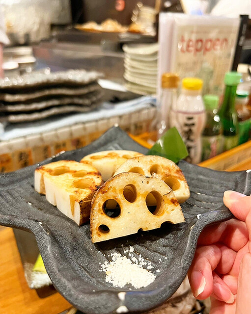 厚く切って貰ったレンコンを、トリュフ塩で戴く一皿。