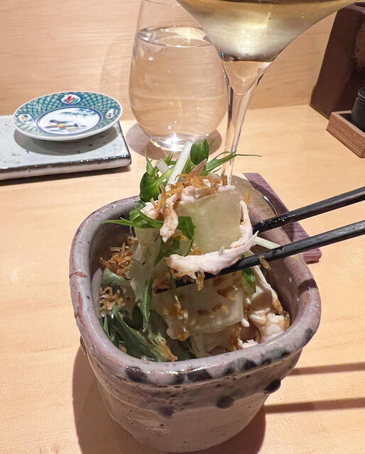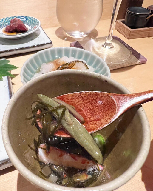 青じその香りと、繊細な品があるのにどこか肉々しい味わいも。