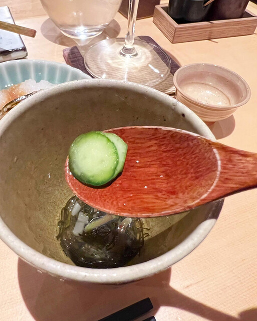 小さめ胡瓜の輪切りはとても可愛く、岩もずくの繊細な食感。