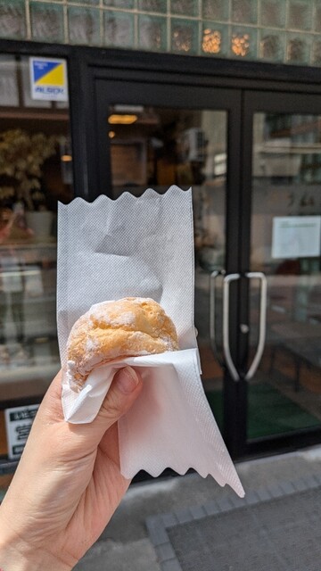 ★結果、今まで食べた中で1番美味しいシュークリームでした。粉砂糖もそうだが、ふわふわなのにサクッとした感触もあり、何とも言えない美味しさ!秒でなくなりました。次は大きいサイズが買いたい