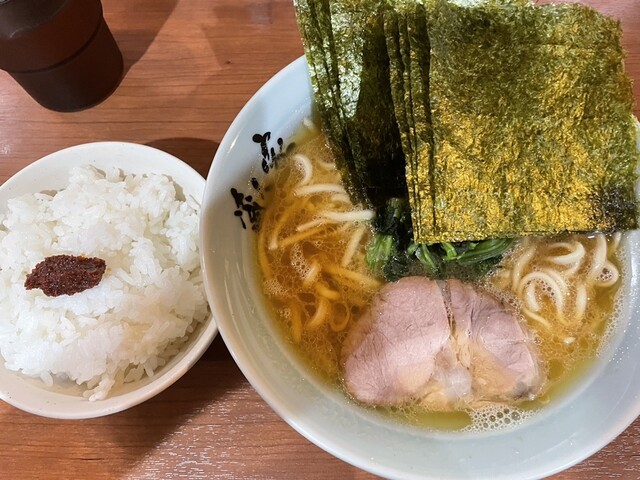 今回もラーメンに海苔トッピングでライスも注文です。麺硬め、味薄め、あぶら普通で注文です。