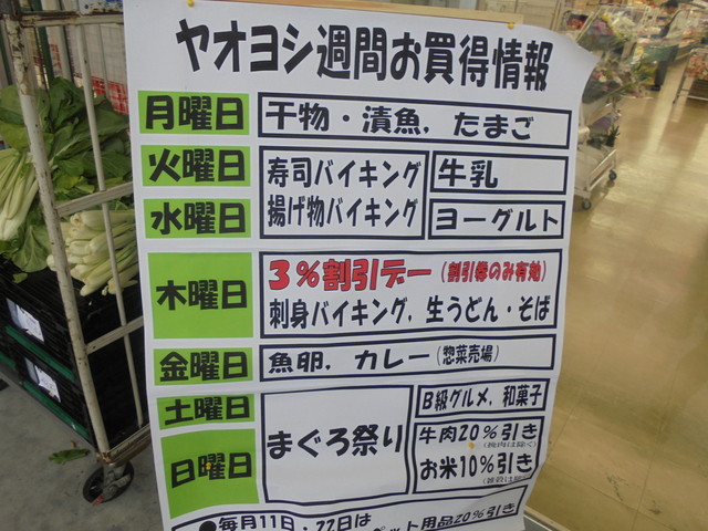 値引き商品の場所が青果の目の前になりました