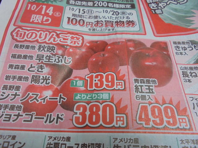 買うものはリンゴ(フジ)くらいかな