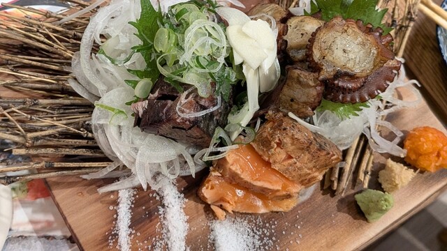 鰹のたたきでは有名な手法ですが、なかなか他の魚介類で出してくれるところは少ないですよね!