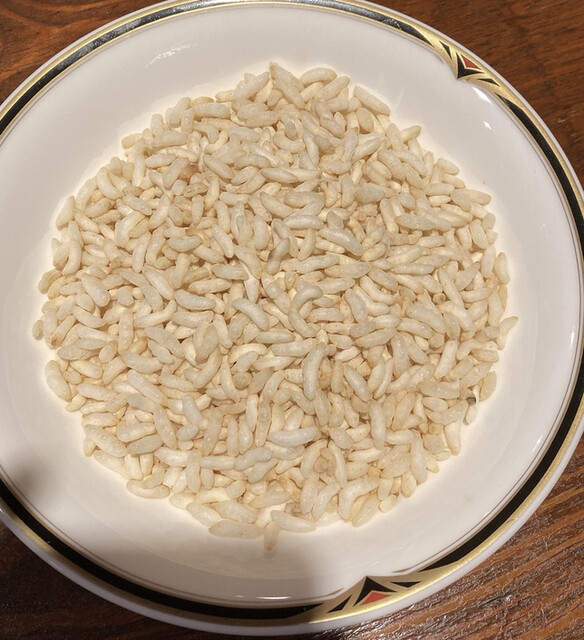 豆のせんべい。焼きタイプではなく揚げっぽい。そのまま食べても混ぜても。
