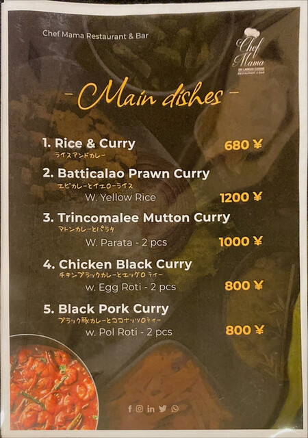 スリランカ料理店の「Chef Mama」というお店に行ってきました。