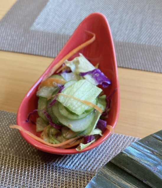 ミニサイズのサラダ。たぶん普通のドレッシングかと。