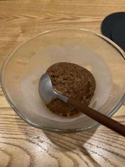 松とりんごのシャーベット。松の香りがすっごい(´⊙ω⊙`)これも初めての味で楽しめました♪