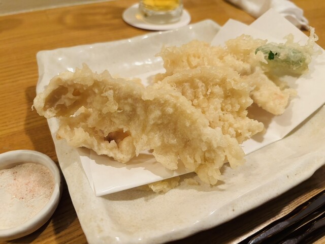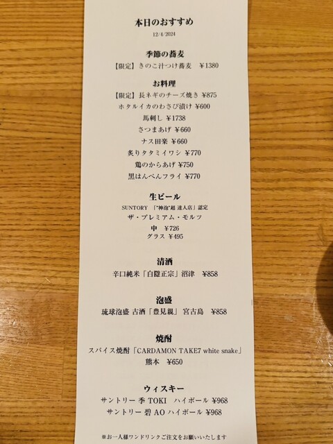 オススメの馬刺し、その他にとり天、蕎麦豆腐を注文。馬刺しは生姜、ニンニクが添えられていて赤身が美味しかった。とり天は衣がサクサクで、本場のとり天ってちょっと衣がしっとりなんだけど、サクサクも美味しいな✨もちろん豆腐も美味しかった。店員さんはほぼ女性で、とても良い気遣い。タイミングよく追加メニューなど聞きに来てくれた。こういうお店は本当に居心地が良い。