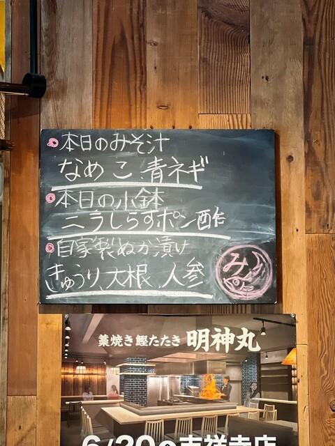藁焼きかつお塩たたき御膳中(ご飯おかわり無料、漬物、小鉢、味噌汁付き)1800円。