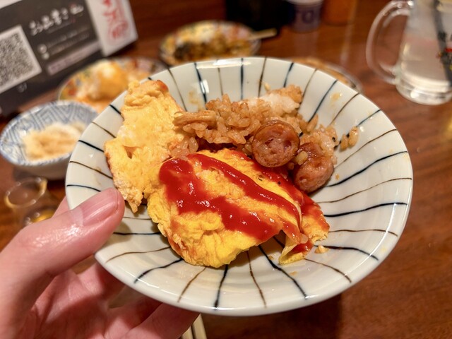 厚みのある卵に+ウインナー&ほぐしチキン入りで肉肉しくて
