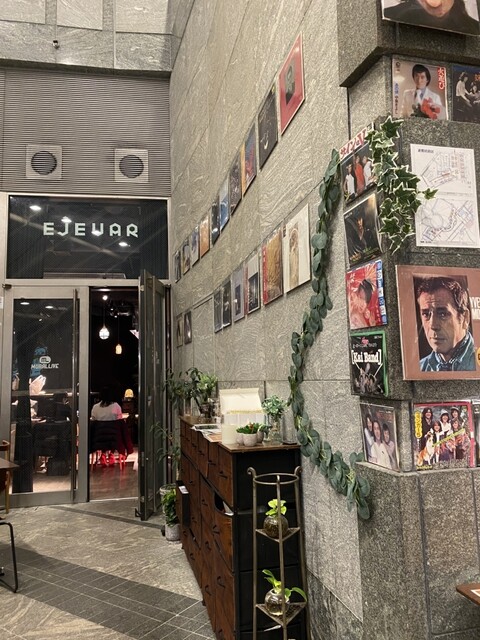 ナビで「あと10m」。このビルで間違いない。案内にあった3階に向かう。お店に入ると、インテリアはオシャレ空間。しかし、壁には昭和を彩ったスターたちのレコードジャケット。このアンバランスさが妙に心地よい。