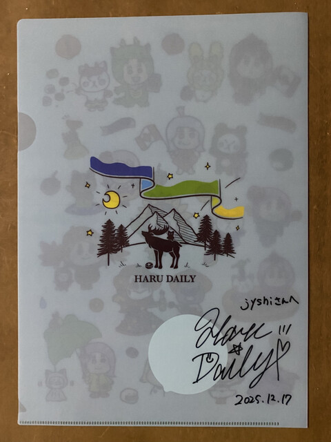 出来上がるのはしばらくかかるとのことなので、この時間にグッズを確認。クリアファイルを購入すると、偶然にも横をはるさんが通りかかったので、サインのおねだり。