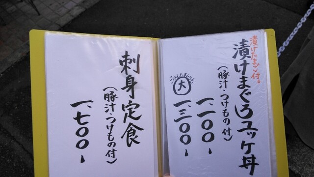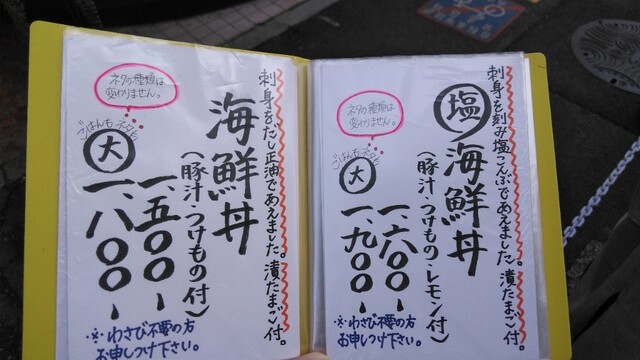 塩海鮮丼は刺し身を刻み塩昆布であえた丼物です。漬け卵付きです。