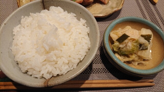 夏に伺った際には白飯を3杯いただきましたので、今回は少し控え目に大盛2杯として、大根の辛子漬けとともにさらっといただきました。